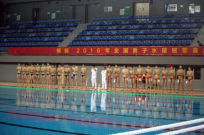 ????梧州零距離網快訊 4月22日早上8:00,哨音一響,水花四濺。2016年全國男子水球冠軍賽首場水上大戰(zhàn)天津VS四川,在梧州市游泳(跳水)館準時開賽。