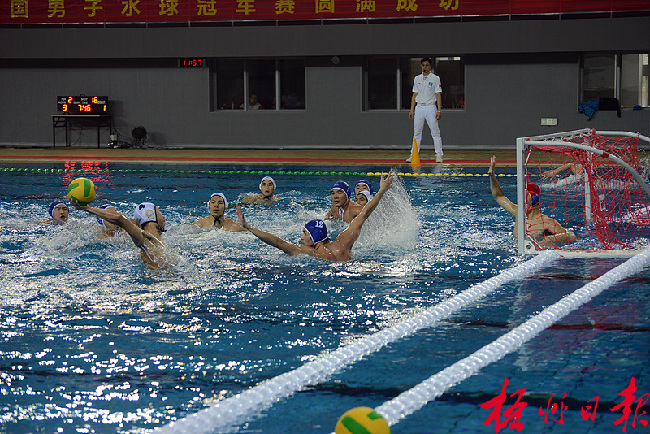 ????梧州日報訊(記者 全淦枚) 4月23日,在梧州市游泳跳水館舉行的2016年全國男子水球冠軍賽進入第二天,當天一共進行了8場比賽,皆是小組預賽,A、B兩組的隊伍各自兩兩循環對陣,運動員們在水中奮力比拼,為觀眾呈現了一場場激烈的比賽。