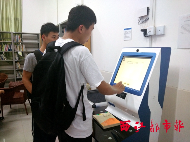 ????據悉,這臺機器不僅是借書機,也是還書機,學生還書時只要將書本放到機器的識別器上,等機器識別圖書后,再將圖書放在還書架上,就輕松完成還書了。