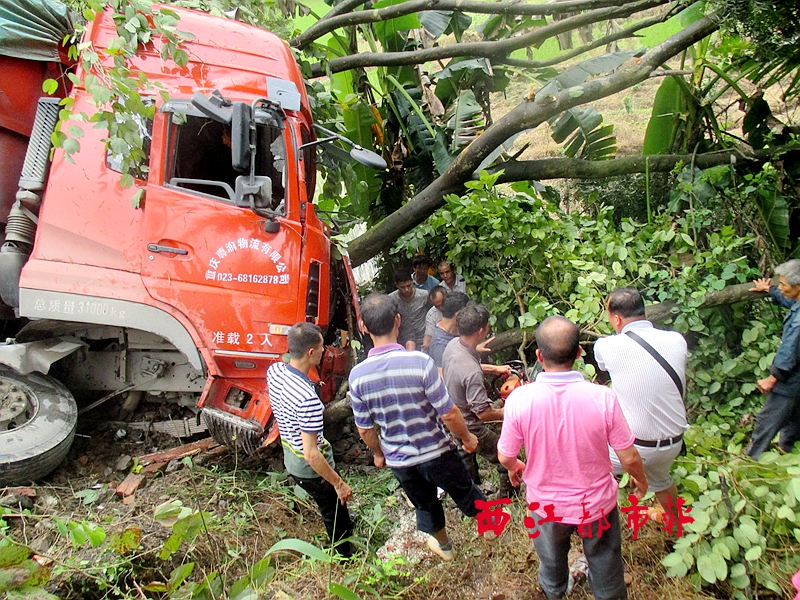??? 4月26日下午3時,重慶籍司機張先生駕駛重型大貨車,由南寧往梧州方向行駛,至藤縣天平鎮竹田村路段,與相向行駛的重型半掛牽引車相碰撞。之后,大貨車翻下公路左側山溝,撞上一棵樹干粗如水桶的大樹。身負重傷的張先生被夾在嚴重變形的駕駛室里,生命危在旦夕。