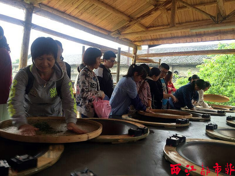 游客們動手體驗手工制茶。 西江都市報記者 龍天傳/攝