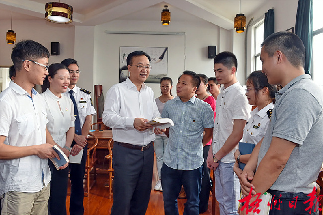 ????會上,黃俊華與數名青年代表就如何引領廣大農村青年投身到扶貧開發工作、如何加快建設特色鮮明的地方性應用型高水平大學、如何引導大學畢業生服務農村建設等進行互動交流。報告會前,黃俊華到2016年梧州青年讀書季“青春嗅書香,成長更芬芳”讀書分享沙龍,與參與讀書沙龍的青年代表親切交流,鼓勵大家多讀書、讀好書,要帶著問題、帶著思考讀,辯證汲取書中精華,豐富知識儲備,涵養道德品質;要多分享、多交流、多探討,在觀點碰撞中深化對現象、問題的認識,收獲新知,促進成長。