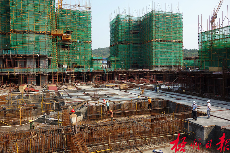 ????5月5日上午,記者在項目施工現場看到,多棟樓房正在加快主體施工,伴隨著隆隆的機械聲,300多名施工人員趁著晴好天氣在各個施工點上有序忙碌,或加工鋼筋,或綁扎鋼筋,或安裝模板,或澆筑混凝土。據介紹,1號樓進度較快,已經施工到地上第八層的剪力墻,6號樓建設到第七層,3、5、7、8號樓建設到第二層,靠外面的2號樓進度較慢,還在進行地下室基礎施工。