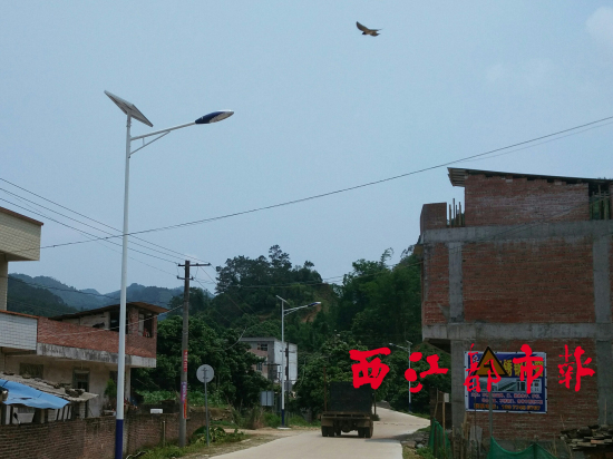 ????5月6日,記者來到了這個藏在深山里的小村落,映入眼簾的,除了村里的民房,還有安裝在道路兩旁一桿桿嶄新的路燈。路燈桿上除了有路燈,還有一面小小的太陽能接收板。