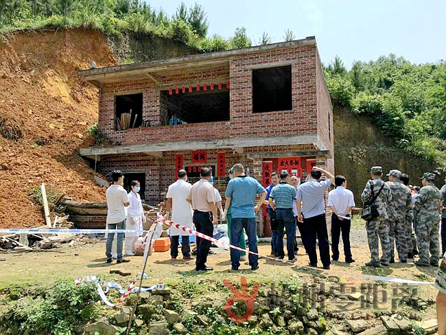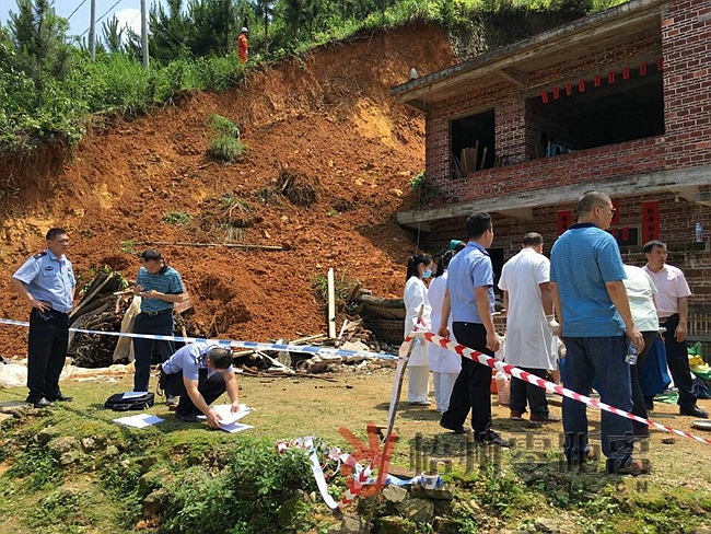 ????上午11點17分,梧州零距離網記者跟隨消防等救援隊伍趕到現場,先前到達的還有救護車和醫護人員。在塌方現場,記者看到有一棟靠山邊建的私人屋,兩層結構,整體還沒有裝修。