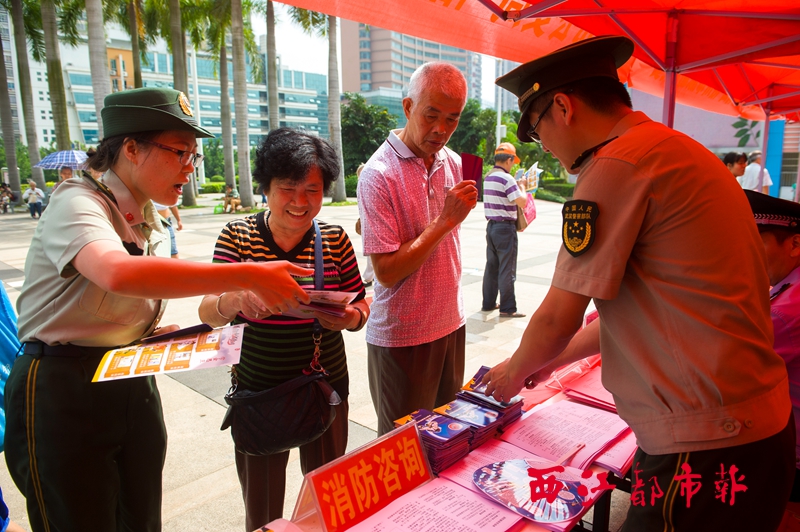 ??? 5月27日,梧州市消防支隊官兵在政務(wù)公開日中接訪群眾。當(dāng)日上午,梧州市在市政廣場舉行第四屆政務(wù)公開日活動,64個市直、中直行政機關(guān)、部分公共企事業(yè)單位及城區(qū)政府工作人員走出辦公室,現(xiàn)場為群眾和企業(yè)提供政策咨詢、辦事咨詢服務(wù)。 西江都市報記者 何鎏/攝