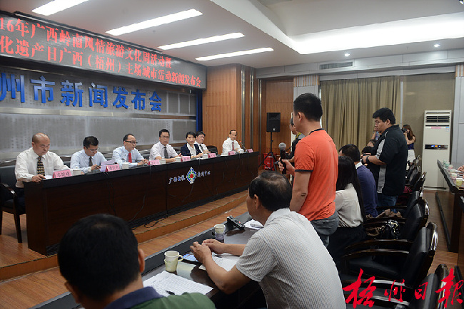 ????6月2日上午,我市舉行了“2016年廣西嶺南風情旅游文化周”活動暨“2016年中國文化遺產日廣西(梧州)主場城市活動”新聞發布會。圖為記者正在提問。