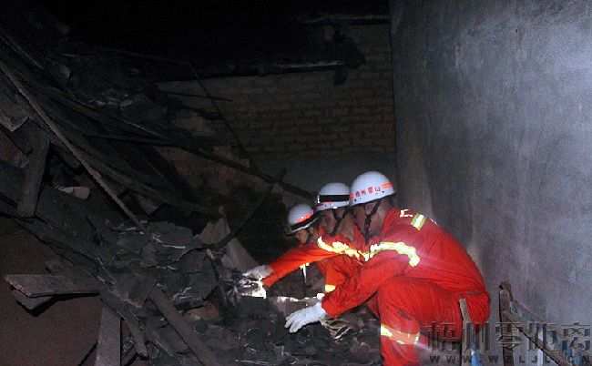 ????4時44分,消防官兵到達現場,經初步偵查:倒塌民房為一層磚木結構,建筑高度大約4.5米,民房靠南面一半的墻體發生倒塌,一名約80歲的阿婆被倒塌墻體掩埋在狹小空間內,幸運的是阿婆只是受到輕微擦傷。