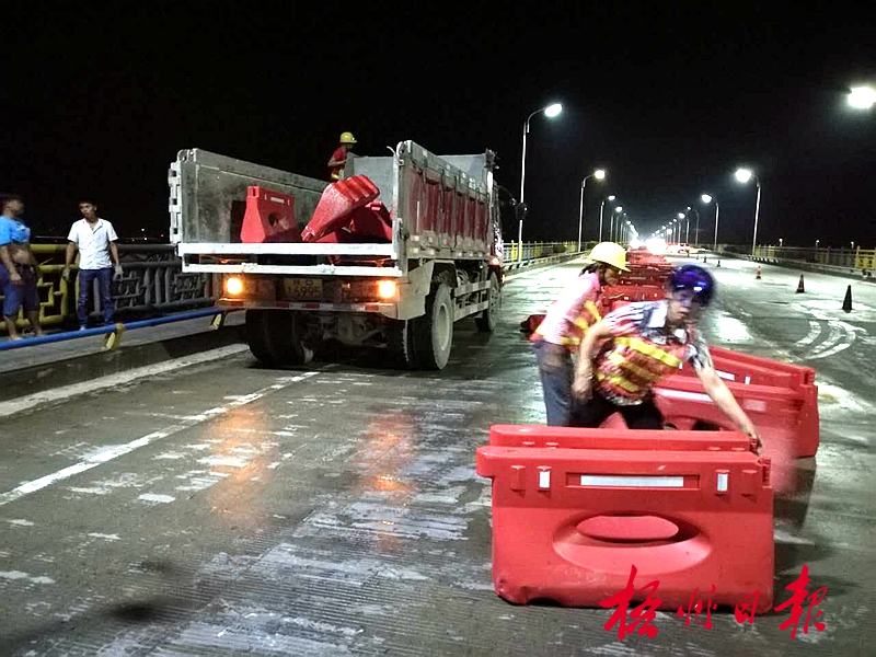 ????大橋于5月9日開始維修施工,并實行主河橋單向通行。目前,維修工程已按計劃完成,工作人員連夜撤離反光錐筒和水馬等圍擋設施,當日起恢復大橋雙向通行。