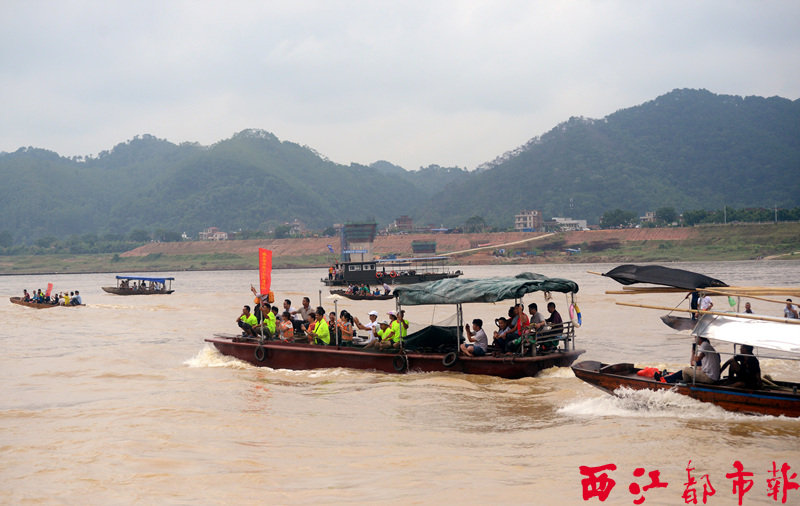 多支由親友團(tuán)組成的助威小艇,在賽道外與參賽的龍舟隊一路同行,鄉(xiāng)親們不停為自己支持的隊伍吶喊加油。