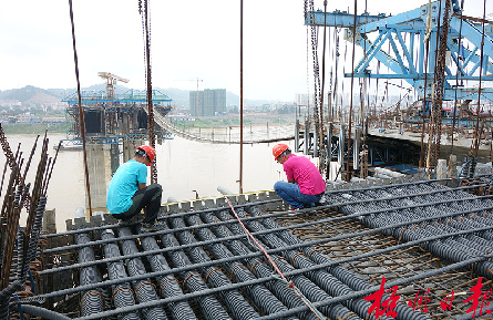 ????6月12日,施工人員在焊接萬壽宮市場攤位上方的鋼架結構,目前,一樓攤位的結構已基本完成鋪設。