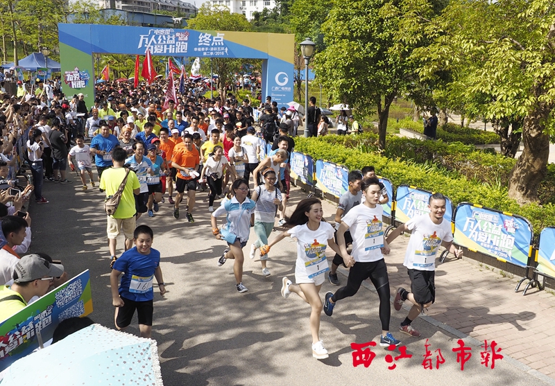 ??? 西江都市報訊 (記者 高云)昨日上午,2016“為愛Hi跑”梧州站公益長跑活動在市玫瑰湖公園開跑。活動當天,在梧州市民熟悉的、《外來媳婦本地郎》劇中“康天庥”的扮演者李俊毅帶領下,1200多人牽手Hi跑,用健康的方式加入到愛心公益中,用腳下的力量支持奧運。
