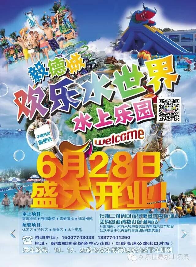 ???? 歡樂水世界現(xiàn)定于2016年6月28日盛大開業(yè),為您提供一個(gè)體驗(yàn)夏日冰涼快感、休閑避暑、朋友相聚、家庭聚會(huì)、親子游樂的好去處,您還猶豫什么?趕快行動(dòng)吧!