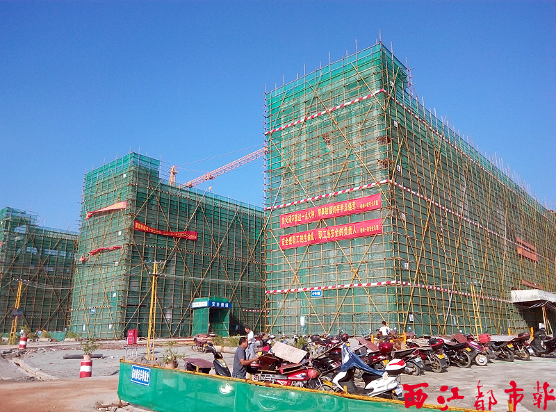 ????6月23日,梧州市職業教育中心(三期工程)項目工地,樓高5層的4號、5號實習實訓樓已經封頂,進入驗收階段。