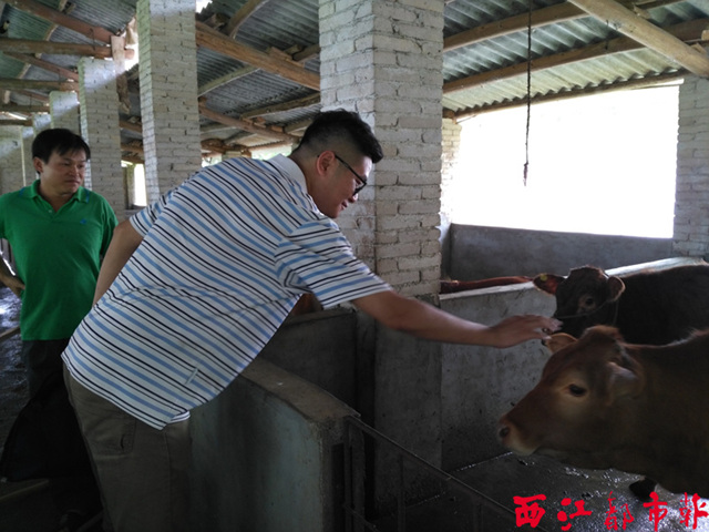 “你這里養的是什么牛?賣出一頭牛能賺多少錢?” 剛到埠,許勁毅一邊問,一邊摘下眼鏡用袖子擦著額頭上豆大的汗珠。張金熟絡地向他介紹道,自己養的是黃牛和水牛,一共12頭,專門賣出去做食用的。牛都是從貴港平南縣買回來,一頭牛買入的價錢是3000元,如果生長順利,養一年后可以賣得6000元的價錢。