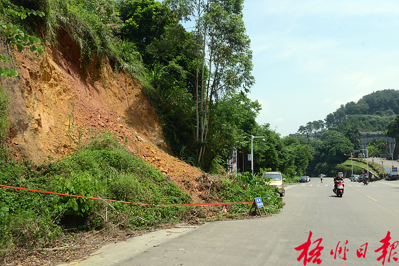????由于近日連降大雨,白云山公園正門對面發(fā)生上邊坡塌方,滑下的山泥幾乎占去半幅車道。目前,塌方點周圍已設(shè)置警戒線。 李鴻榮 攝