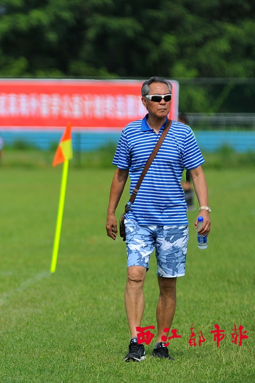 7月20日,我國足球名宿,原中國男子足球隊總教練戚務生作為本次比賽的邀請嘉賓到場指導賽事。戚指導雖然已經72歲高齡,但依然每天到賽場巡視,與各隊隊員、教練員交流。 西江都市報記者 何鎏/攝