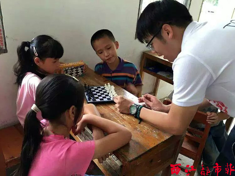 志愿者教小學(xué)生們下國(guó)際象棋。(西江都市報(bào)記者 紀(jì)榮蘭/攝)