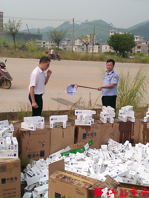 ????本次行動中,藤縣公安局經偵大隊主動聯合當地煙草專賣局、工商局,研究、制定切實可行的銷毀方案,對經偵大隊在開展“打非”專項行動中所查獲的涉案物品進行集中銷毀,起到震懾走私違法犯罪活動的作用。據統計,此次銷毀的走私煙主要有中南海牌霉變走私卷煙1780條,涉案價值約18萬元。
