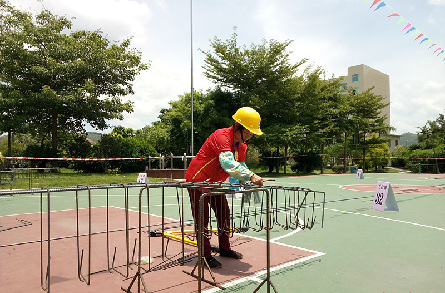 7月29日,在白云山景區內,工人正在神鹿臺開展施工作業。
