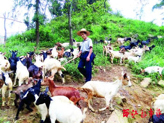看著覓食的山羊,郭勝強告訴記者,目前他養殖的主要以黑山羊為主,還有幾十頭白山羊、黃山羊以及波爾山羊,吃的就是山上的青草、竹葉等,為了增強羊的抵抗力,他會定時沖調淡鹽水給山羊喝。