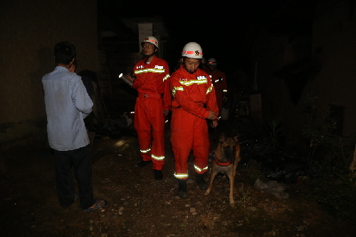 7月31日晚,消防官兵在塘灣村流塘組救援