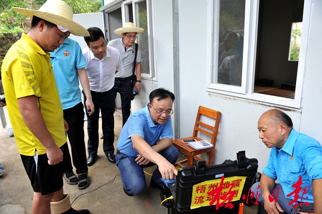 8月1日下午,市委書記黃俊華到“7·31”地震震中蒼梧縣沙頭鎮參田村指導抗震救災工作,聽取國家地震部門工作人員介紹地震流動監測情況。 孟亞西 攝