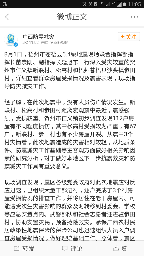廣西防震減災(zāi)微博更新截圖