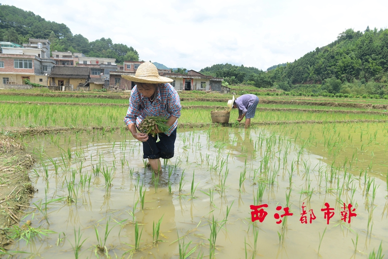 ?8月3日,在蒼梧縣沙頭鎮參田村,一些村民正在田里插秧。 李鴻榮/攝