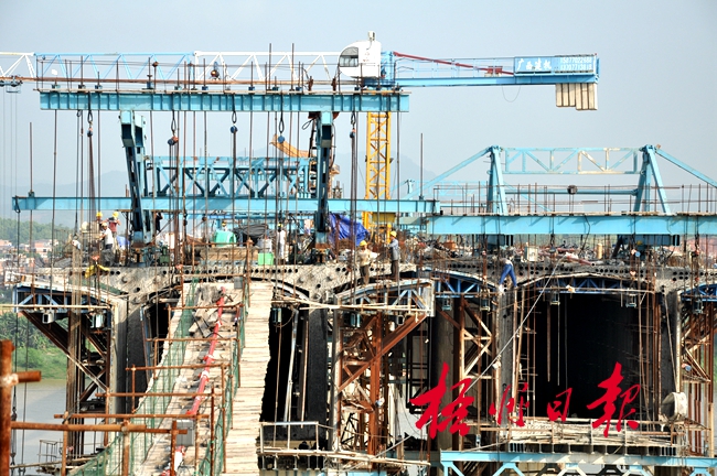 ????“目前施工人員主要集中開展對四個水中主墩現澆梁段的模板焊接、鋼筋綁扎、鋼絞線波紋管安裝等工作,計劃4日晚10號墩右幅16號梁段進行混凝土澆筑。”工程部長劉宏科說。近段時間以來,西江三橋主河橋四個主墩搶抓橋梁現澆段施工,幾乎每天都有梁段澆筑混凝土,各橋墩之間的橋面正在逐漸成型和靠攏,計劃今年底實現合龍。截至目前,右幅箱梁已完成60個梁段,剩余28個梁段,完成率為68.2%;左幅已完成45個梁段,剩余43個梁段,完成率為51%。 |