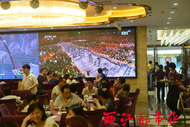 昨天上午,隨著第31屆夏季奧運會開幕,我市不少茶樓餐廳也紛紛轉播開幕式盛況,吸引了不少市民觀看。?李鴻榮/攝
