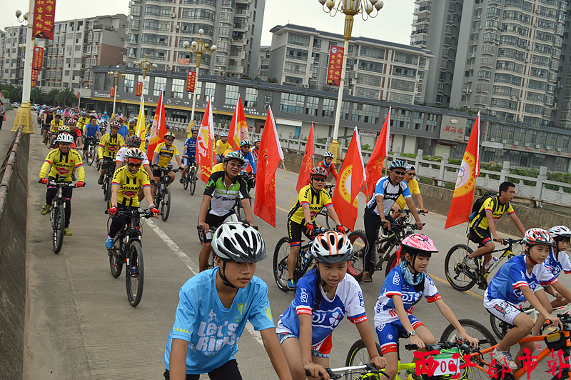 ????8月8日,蒙山縣百名自行車(chē)騎行愛(ài)好者排在全民健身日活動(dòng)隊(duì)伍的前面。當(dāng)天,第八屆廣西體育節(jié)2016年“全民健身 健康廣西”百萬(wàn)群眾健身走(跑)蒙山分會(huì)場(chǎng)活動(dòng)儀式在該縣永安王城廣場(chǎng)舉行,全縣干部職工、武術(shù)協(xié)會(huì)、健身隊(duì)和鄉(xiāng)鎮(zhèn)群眾近千人參加了活動(dòng)。通訊員 戴連升 關(guān)新 攝影報(bào)道