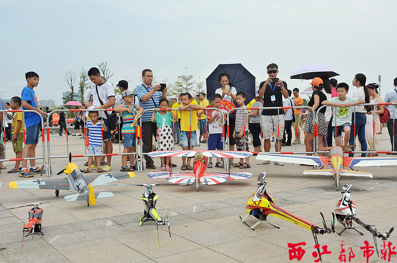 ????不是所有人都有能力自己駕駛飛機上天,然而,航模飛機卻能夠載著你的夢想在藍天翱翔。8月21日上午,由梧州市總工會主導的“翱翔蒼海,夢想起航”暨第四屆梧州領域航模俱樂部飛行競技表演賽活動,在蒼海公園親水平臺上演。別開生面的機型展示、絢麗多彩的拉煙表演,驚險刺激的空中追逐……活動不僅成就了航模愛好者的年度大聚會,也讓觀眾親身感受到這項運動的酷炫魅力。