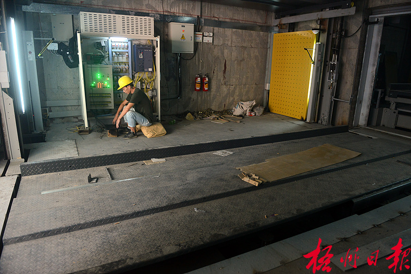 ????據了解,該停車樓內200多個停車升降梯已基本安裝完畢,目前建設單位正在對升降梯、監控系統、熱感應系統等智能設備進行調試,同時室內的裝修收尾工作也在抓緊開展,爭取在10月份前對外開放使用。 李鴻榮 攝