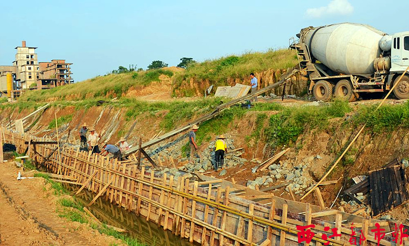 ????8月24日,在藤縣河東防洪堤建設工地,施工人員正往堤壩上充填混凝土及基石。據悉,為了在9月份長洲水利樞紐蓄水前完成該標段工程,目前施工方正加快施工。