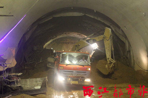 記者從岑水高速公路項目業主廣西信達高速公路有限公司了解到,面對重重壓力,參建單位多次邀請中國工程院院士、交通部、長江學者等專家到現場研討隧道處治方案,并進行比選優化,最終確定采用帷幕注漿加固法進行治理。同時,與施工單位簽訂目標責任書,倒排工期編排施工計劃,并加大現場人、材、物投入,最終使均昌隧道施工進度得到加快。目前,在隧道左洞成功貫通的同時,右洞掘進還剩69米,預計將于今年11月中旬貫通。