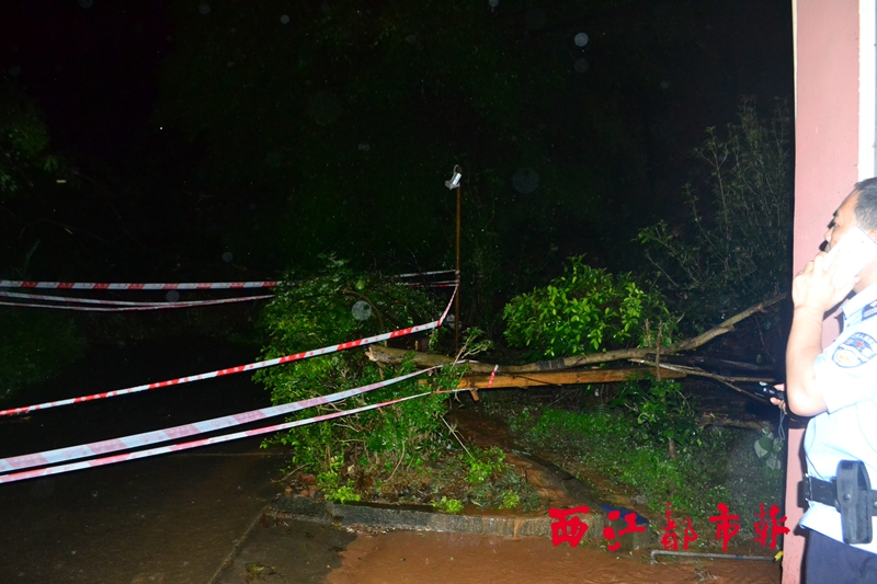 ????接警后,城東派出所民警迅速趕到現(xiàn)場處置險情。在民警的指引下,記者看到塌方口子寬約10米,不少樹木橫七豎八地倒在山腳。一名民警表示,經(jīng)粗略估算,有十多棵樹被刮倒,有的樹已壓到了半空的通信光纖線路。