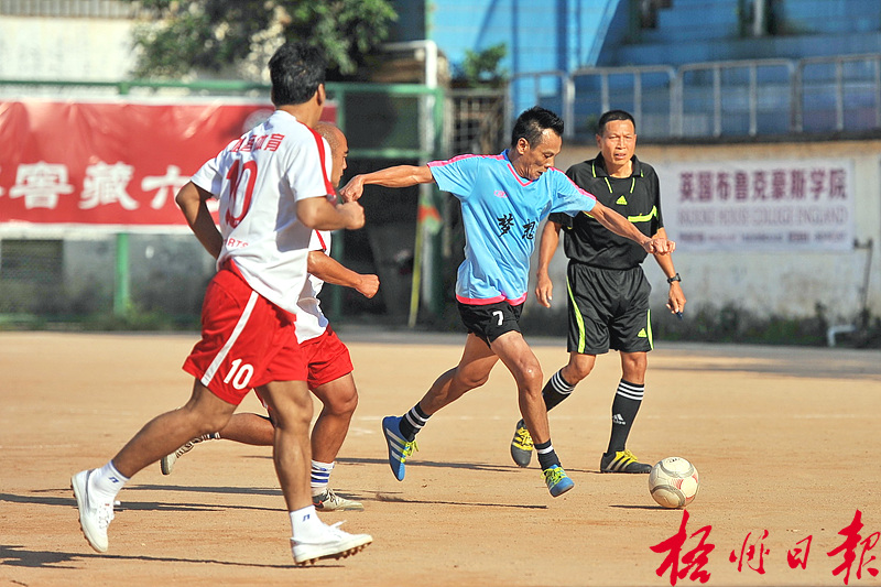 ??? 近日,1991年獲中國足壇金球獎、中國足球先生,1993年再度榮膺中國金球獎、中國足球先生的廣州籍前國腳吳群立,廣州市足球協會總監溫志軍及香港足球界前輩來梧開展足球交流活動,與梧州足球愛好者舉行“中秋足球賽”,吸引眾多球迷前來觀賽。 孟亞西 攝
