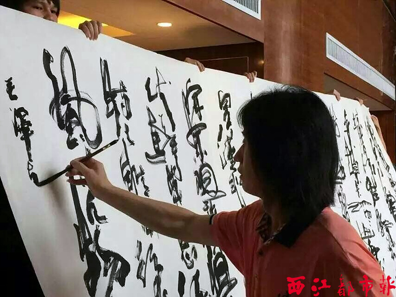 ????2015年10月17日,徐世葉受四恩寺釋成清法師之邀,帶著自己創作的20幅書法作品來到四恩寺,支持四恩寺書畫院成立,并受邀擔任該書畫院院長。時隔一年,徐世葉再次走進四恩寺,為書畫院揮毫潑墨創作《騰龍》《心底無私天地寬》《法界圓融》等多幅書法作品。