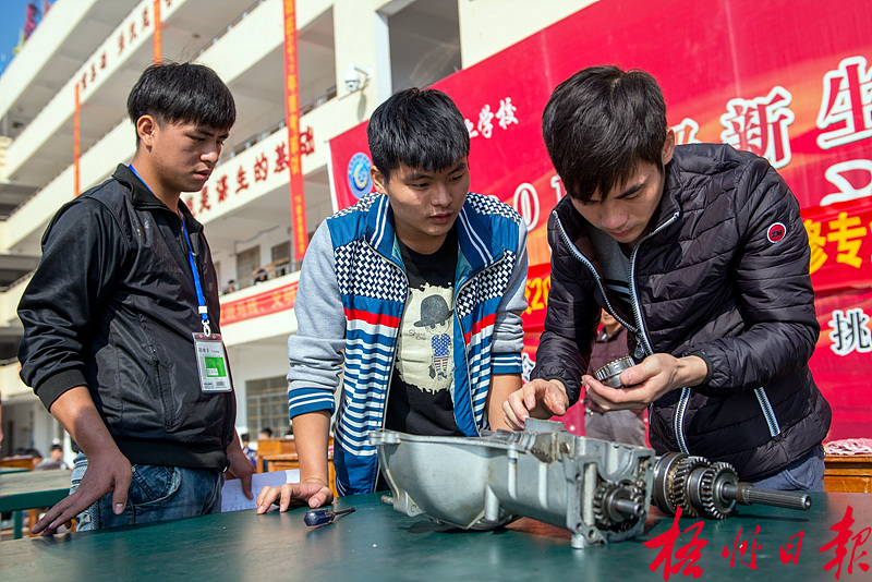 ????當天,藤縣中等專業學校舉行2016年級新生汽車運用與維修技能大賽,通過比賽,檢驗提高學生的實際操作技能,為學生就業打下良好基礎。 蘇杰生 攝