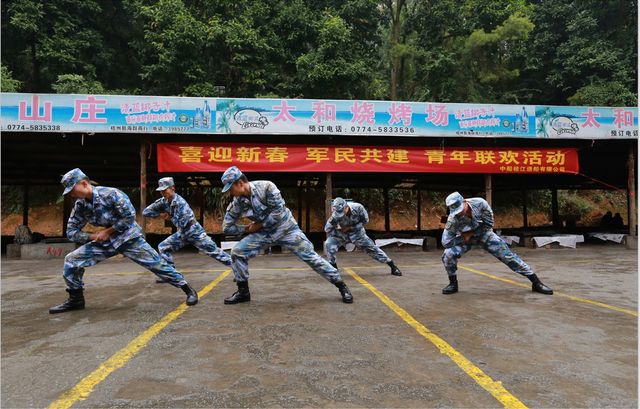 活動首先通過組建團隊、自我介紹的環節讓到場青年得以相互認識,隨后,桂船部隊官兵操練展示、軍歌演唱更展現了他們良好的精神風貌。活動通過互動游戲促使每位青年朋友都積極參與其中,為大家營造了輕松而愉快的交友氛圍,搭建了青年人相識相知的情感交流平臺。