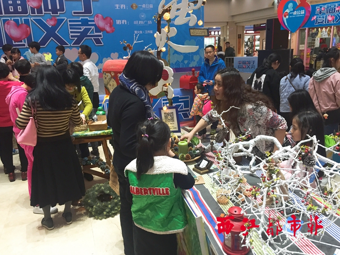 3月11日,在旺城廣場,參加義賣活動的家長向市民介紹義賣的商品。當天,萬秀區富安社區和旺城廣場聯合發起了“幸福種子,愛心義賣”活動,由愛心家庭義賣明信片、鮮花種子、書籍等物品來籌集善款。據悉,籌集到的善款將由富安社區用于幫助轄區的單親貧困家庭。