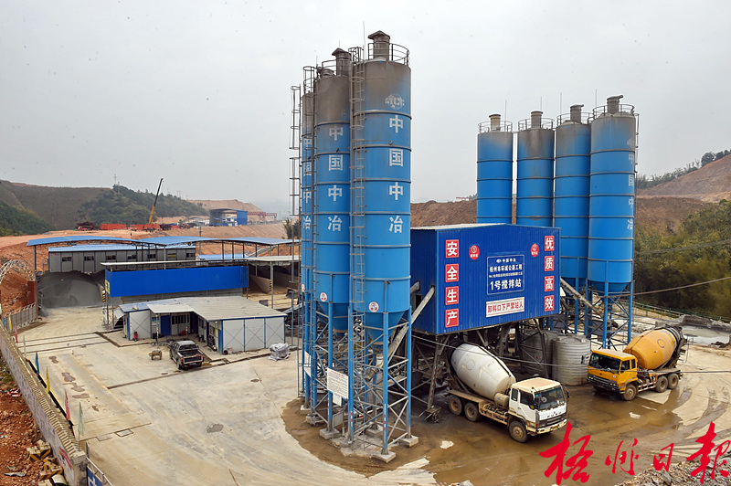 ????由中國一冶集團有限公司承建的塘源拌和站,主要負責環城高速公路底沖大橋、富林口大橋、塘源互通跨線橋,多條隧道,以及梁板預制場的預拌混凝土供應。該站設計產能為加工混凝土16萬立方米,配備兩座拌合樓,能夠滿足供應范圍內最大單批次連續施工需要。孟亞西 黃海崢 攝
