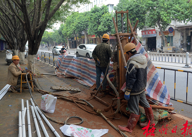????據了解,在今年汛期到來前,市水利部門在西堤一路河西防洪堤(角嘴段)進行堤防灌漿加固工程,施工人員在人行道和機動車道上鉆孔埋管。如今已鉆孔100多個,下一步將對已鉆孔的堤段進行灌漿加固。 李鴻榮 攝