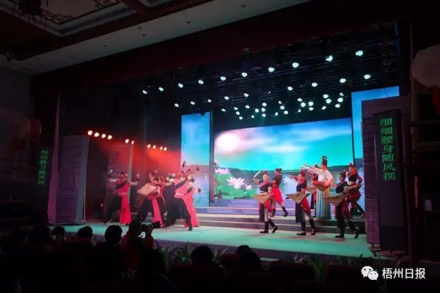 黃姚大劇院內演出結合麒麟尊、瑤族長鼓等元素的古裝歌舞劇《臨賀長歌》。