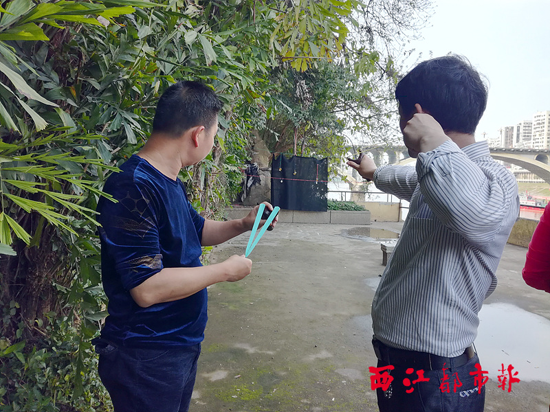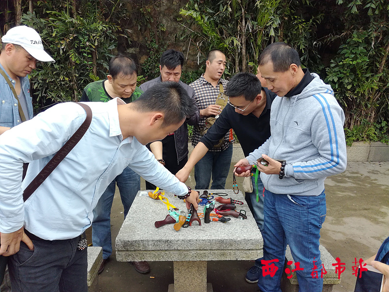 ????“與其說是比賽,倒不如說是一場(chǎng)‘弓友’的大聚會(huì)。”作為這次比賽的組織者之一的陳文敏說,彈弓是一項(xiàng)古老的民間競(jìng)技運(yùn)動(dòng),眼下,在全國(guó)不少城市開始流行起來。近年來,在梧州市玩彈弓的人越來越多,他們都是通過QQ群或微信群進(jìn)行線上交流,通過舉辦比賽等方式進(jìn)行線下活動(dòng),一方面以“弓”會(huì)友,另一方面促進(jìn)大家競(jìng)技水平的不斷提高。