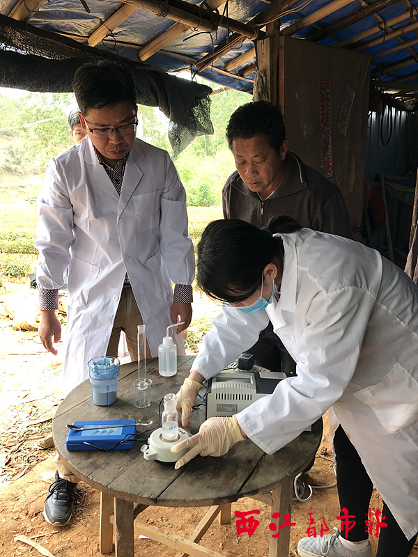 ????3月27日,梧州市質量技術監督局執法人員開展農資打假下鄉活動,來到龍圩區新利村農戶駱旭培的桉樹育苗田里,為駱旭培所使用的化肥進行抽樣檢測。