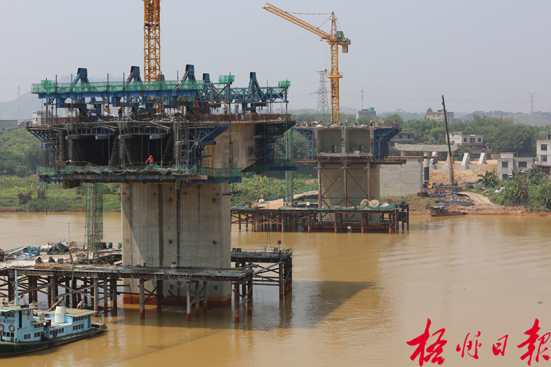 4月29日,在藤縣杉花根大橋,工人正開展橋墩施工。時下,藤縣上下凝心聚力推進(jìn)城市建設(shè)提升工程,加快杉花根大橋、河?xùn)|防洪堤等項目施工進(jìn)度,拉動投資穩(wěn)步增長。其中,杉花根大橋概算投資為9520萬元,目前已完成投資超過六成,施工方在五一假期合理安排力量投入施工,力爭今年9月建成通車。 黃國策 攝