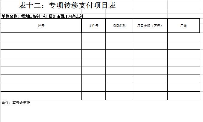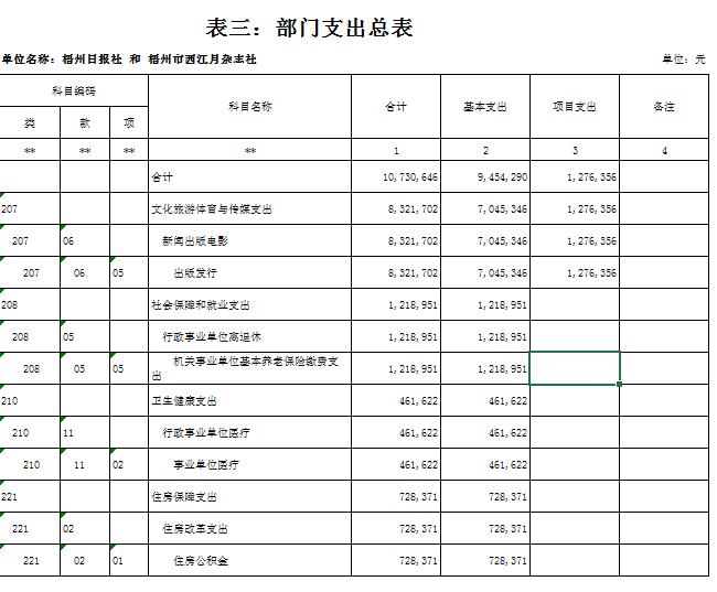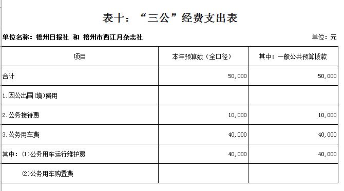 第一部分:部門概況 一、 基本情況(主要是工作職責(zé)) 梧州日?qǐng)?bào)社是梧州市委主管的新聞機(jī)構(gòu),負(fù)責(zé)宣傳黨的路線、方針、政策,傳播梧州市主流新聞和其他信息,大力弘揚(yáng)時(shí)代主旋律,圍繞市委市政府的中心工作,服務(wù)大局,反映人民群眾的心聲,為梧州政治經(jīng)濟(jì)社會(huì)文化發(fā)展?fàn)I造良好的輿論氛圍,促進(jìn)梧州地方社會(huì)經(jīng)濟(jì)文化發(fā)展。 負(fù)責(zé)出版《梧州日?qǐng)?bào)》和《西江都市報(bào)》,經(jīng)營(yíng)《梧州零距離網(wǎng)站》以及其他書報(bào)刊,從事相關(guān)印刷、發(fā)行、報(bào)紙廣告經(jīng)營(yíng)業(yè)務(wù)。分管西江月文藝雜志社,主管梧州日?qǐng)?bào)社印刷廠。 二、 機(jī)構(gòu)設(shè)置、編制現(xiàn)狀情況(包含基層預(yù)算單位組成、單位性質(zhì)) 根據(jù)規(guī)定,并結(jié)合本單位實(shí)際,我單位共有12個(gè)職能科室,即:黨委辦公室、總編辦公室、財(cái)務(wù)室、發(fā)行部、廣告部、采編中心、專刊中心、群工部、經(jīng)濟(jì)專刊部、新聞研究室、西江都市報(bào)、梧州零距離網(wǎng)站。共有2個(gè)下屬單位:西江月文藝雜志社(科級(jí)差額補(bǔ)助預(yù)算管理事業(yè)單位)和梧州日?qǐng)?bào)社印刷廠(副科級(jí)自收自支事業(yè)單位)。 三、 人員構(gòu)成情況(包含基層預(yù)算單位人員構(gòu)成、經(jīng)費(fèi)管理方式) 梧州日?qǐng)?bào)社截至2019年1月末,在職職工170人,其中:梧州日?qǐng)?bào)社事業(yè)編制人員70人(正處干部 2人,副處干部 5人,正科級(jí)干部5人,副科級(jí)干部11人,事業(yè)人員47人);西江月文藝雜志社事業(yè)編制人員3人;梧州日?qǐng)?bào)社印刷廠事業(yè)編制人員24人。編外聘用73人(未含投遞、臨時(shí)廣告人員)。 梧州日?qǐng)?bào)社截至2019年1月末,實(shí)有退休職工72人,其中:梧州日?qǐng)?bào)社事業(yè)編制退休人員40人,梧州日?qǐng)?bào)社印刷廠事業(yè)編制退休人員26人,西江月文藝雜志社事業(yè)編制退休人員6人。 梧州日?qǐng)?bào)社的經(jīng)費(fèi)管理方式屬于差額預(yù)算管理事業(yè)單位,梧州日?qǐng)?bào)社印刷廠屬于自收自支管理事業(yè)單位,西江月文藝雜志社屬于差額預(yù)算管理事業(yè)。 四、 年度主要工作任務(wù) 梧州日?qǐng)?bào)社負(fù)責(zé)出版《梧州日?qǐng)?bào)》和《西江都市報(bào)》,經(jīng)營(yíng)梧州零距離網(wǎng)站以及其他書報(bào)刊,從事相關(guān)印刷、發(fā)行、報(bào)紙廣告經(jīng)營(yíng)業(yè)務(wù)。西江月文藝雜志社負(fù)責(zé)出版《西江月》雜志。 第二部分: 2019年部門預(yù)算報(bào)表(預(yù)算公開報(bào)表作為附件掛在報(bào)告尾部,詳見附件) 第三部分:2019年部門預(yù)算及“三公”經(jīng)費(fèi)預(yù)算報(bào)表說明 一、2019年部門收支總體預(yù)算情況 (一)收入預(yù)算說明。 2019年收入總預(yù)算10,730,646元,同比減少739,400元,下降6.45%。2019年收入預(yù)算總體減少的主要原因:財(cái)政項(xiàng)目經(jīng)費(fèi)撥款預(yù)算減少,使收入預(yù)算總體有所減少。 其中: 1、一般公共預(yù)算撥款10,730,646元,同比減少739,400元,下降6.45% ,經(jīng)費(fèi)撥款(補(bǔ)助)10,730,646元,主要是人員支出、社會(huì)保障和項(xiàng)目收入等。 2、本單位無(wú)政府性基金撥款收入,同比無(wú)增減變化。 3、本單位無(wú)納入財(cái)政專戶管理的事業(yè)收入,同比無(wú)增減變化。 4、本單位無(wú)轉(zhuǎn)移性收入,同比無(wú)增減變化。 5、上年結(jié)余收入0元,同比無(wú)增減變化。 (二)支出預(yù)算說明。 2019年支出總預(yù)算10,730,646元,同比減少739,400元,下降6.45%;支出減少的主要原因:項(xiàng)目經(jīng)費(fèi)撥款預(yù)算減少,使支出預(yù)算總體減少。 其中: 按支出功能分類科目劃分。 (1)文化旅游體育與傳媒支出8,321,702元,占支出總預(yù)算76.58%,同比減少1,317,205元,下降13.67%。(2)社會(huì)保障就業(yè)支出1,218,951元,占支出總預(yù)算11.36%,同比增加295,301元,增長(zhǎng)31.97%。(3)衛(wèi)生健康支出461,622元,占支出總預(yù)算4.30%,同比增加108,323元,增長(zhǎng)30.66%。(4)住房保障支出728,371元,占支出總預(yù)算 6.79%,同比增加174,181元,增長(zhǎng)31.43%。 按支出結(jié)構(gòu)分類劃分,分為基本支出預(yù)算和項(xiàng)目支出預(yù)算。 基本支出9,454,290元,占支出總預(yù)算88.11%,同比增加2,316,129元,增長(zhǎng)32.45%。 項(xiàng)目支出1,276,356元,占支出總預(yù)算11.89%,同比減少3,055,529元,降低70.53%。 二、2019年部門財(cái)政撥款收支預(yù)算情況 (一)財(cái)政撥款收入總體情況。 2019年財(cái)政撥款收入10,730,646元,同比減少739,400元,下降6.5%。2019年收入預(yù)算總體減少的主要原因:財(cái)政項(xiàng)目經(jīng)費(fèi)撥款預(yù)算減少,使收入預(yù)算總體有所減少。 其中: 1、一般公共預(yù)算撥款10,730,646元,同比減少739,400元,下降6.5%。經(jīng)費(fèi)撥款10,730,646元,主要是人員支出和項(xiàng)目收入。 2、政府性基金預(yù)算撥款0元,同比無(wú)增減變化。 3、上年結(jié)余收入0元,同比無(wú)增減變化。 (二)財(cái)政撥款支出總體情況。 2019年財(cái)政撥款支出10,730,646元,同比減少739,400元,下降6.5%。支出減少的主要原因:項(xiàng)目經(jīng)費(fèi)撥款預(yù)算減少,使