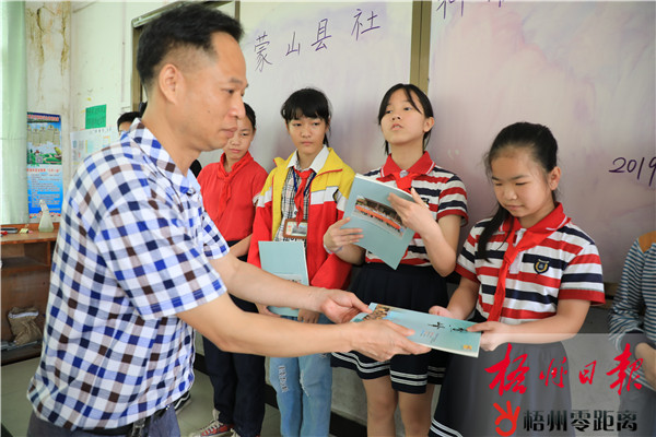 當(dāng)日,蒙山縣社科聯(lián)到陳塘鎮(zhèn)陳塘中心小學(xué)開展科普宣傳活動。工作人員走進(jìn)課堂,向?qū)W生講解社科知識,并贈送《廣西壯族自治區(qū)社會科學(xué)普及條例》等社科讀物,推動小學(xué)生普及哲學(xué)社會科學(xué)知識,弘揚(yáng)科學(xué)精神。 關(guān)新 攝